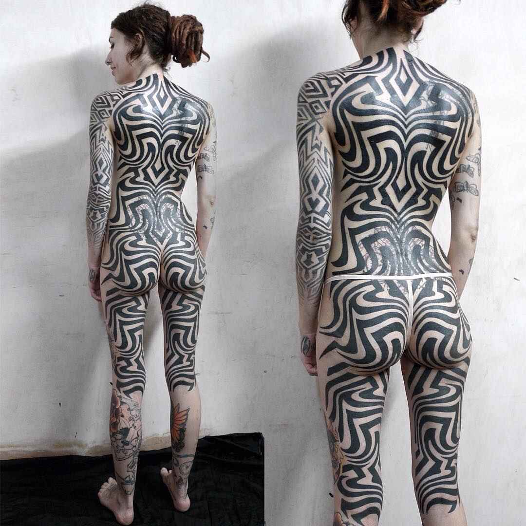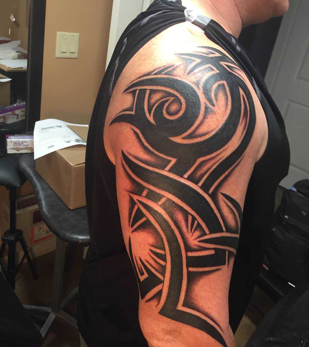 Трайбл делает особенными и тот факт, что его используют для визуальной коррекции фигуры, скрывая недостатки и делая ее более привлекательной. Хороший мастер может нанести узоры, благодаря которым талия носительницы тату будет казаться окружающим тоньше. Или же мужские руки станут выглядеть более массивными, крепкими. Словом, эффекты могут быть самые разные – все зависит от желаний заказчика.