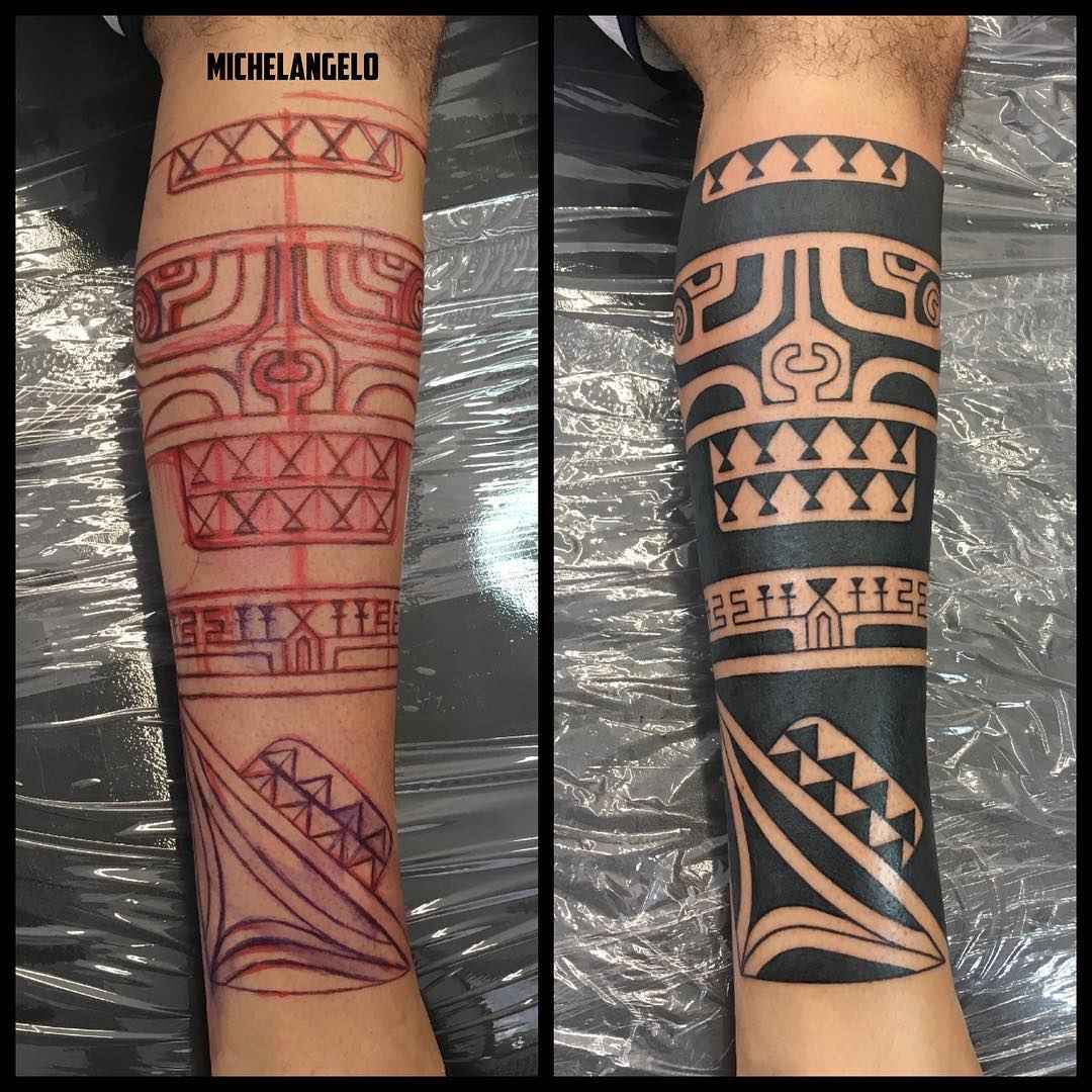 Самый древний узор, насыщенный богатыми переплетениями, множеством орнаментов. В древности такие татуировки говорили о статусе аборигена в племени, о его поступках и достижениях. Главными линиями в орнаменте считаются: