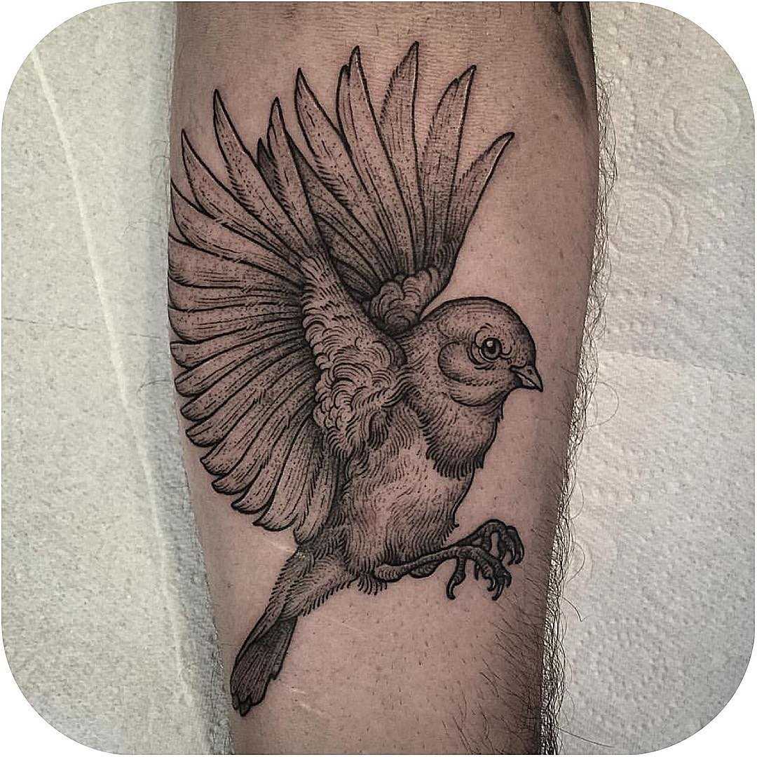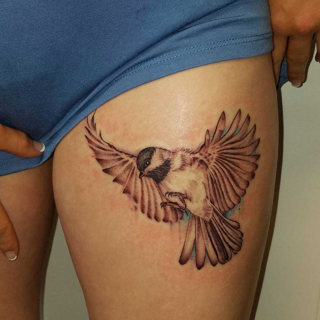 Реалистичная татуировка воробья