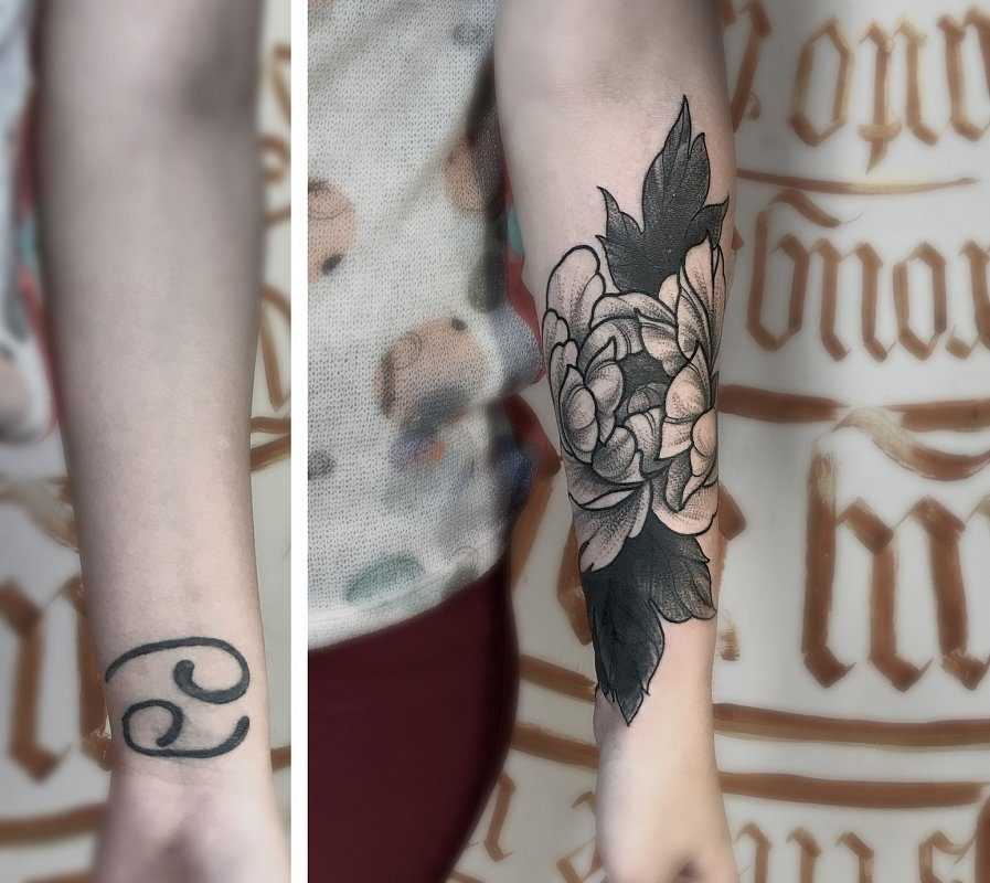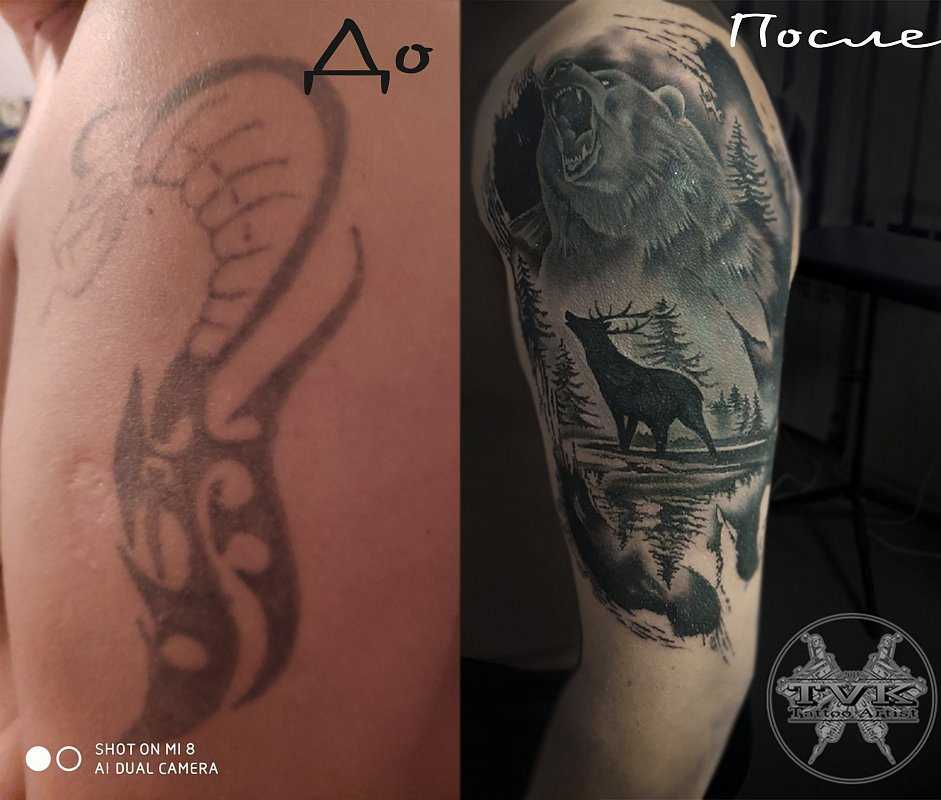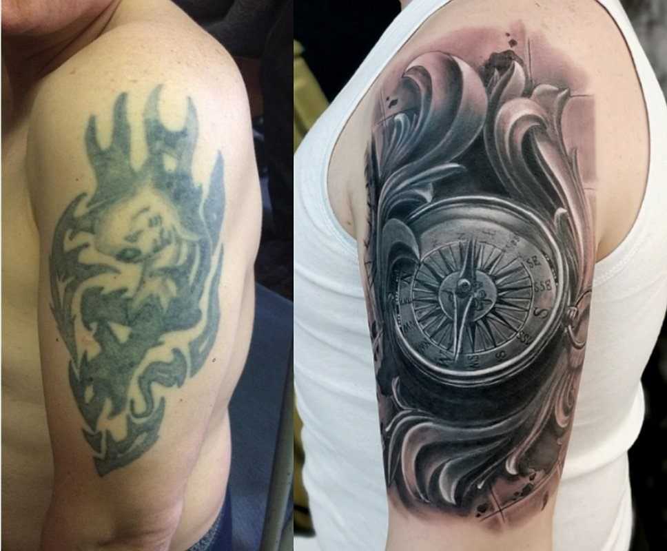 Перекрытие татуировки сегодня нельзя назвать чем-то новым и неизведанным. Прямым подтверждением чему является изобилие фото примеров тату с пометками «до» и «после», на которых можно наблюдать действительно фантастические перевоплощения и исправления некачественных или некрасивых эскизов. Однако следует учитывать тот факт, что постоянно прибегать к подобной процедуре не получится. Поэтому учтите все детали и не устраивающие вас нюансы с мастером. Советы опытного специалиста в этом вопросе будут не лишними.