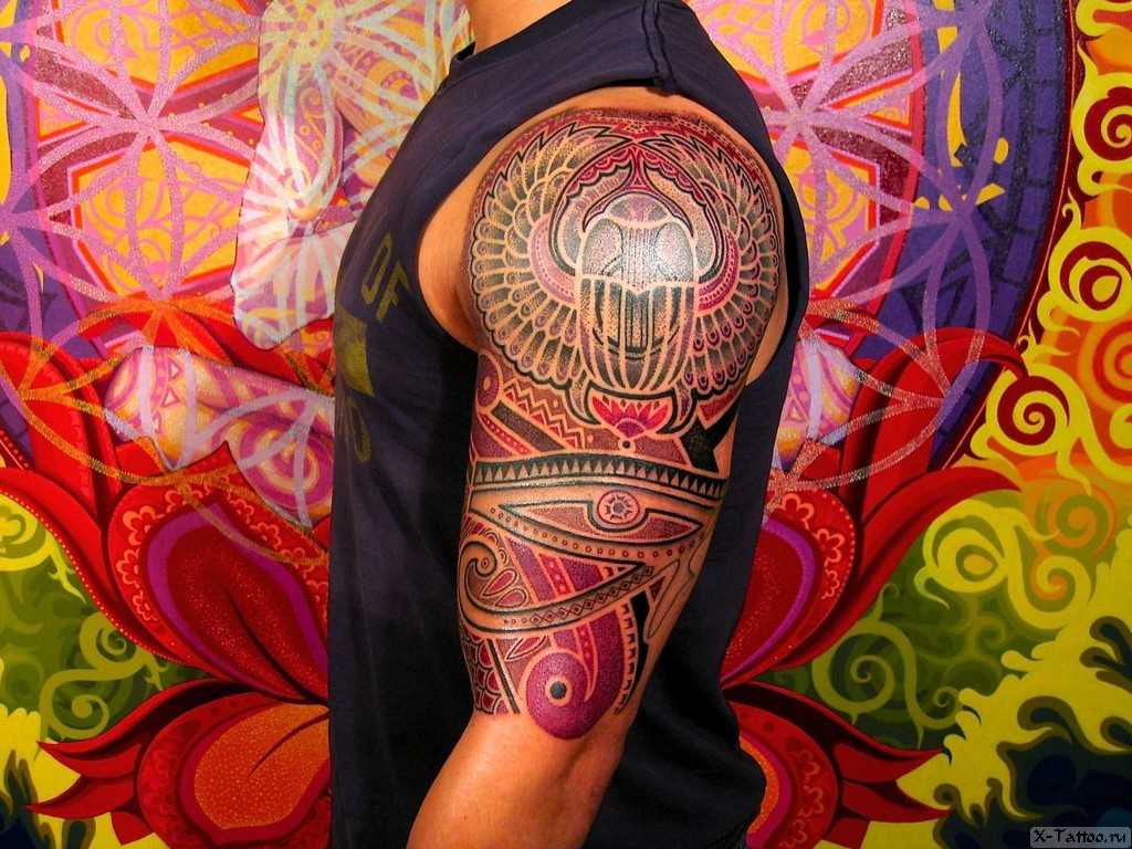 Главной особенностью таких татуировок считается яркость и насыщенность цветовой палитры. Основные изображения в орнаменте: