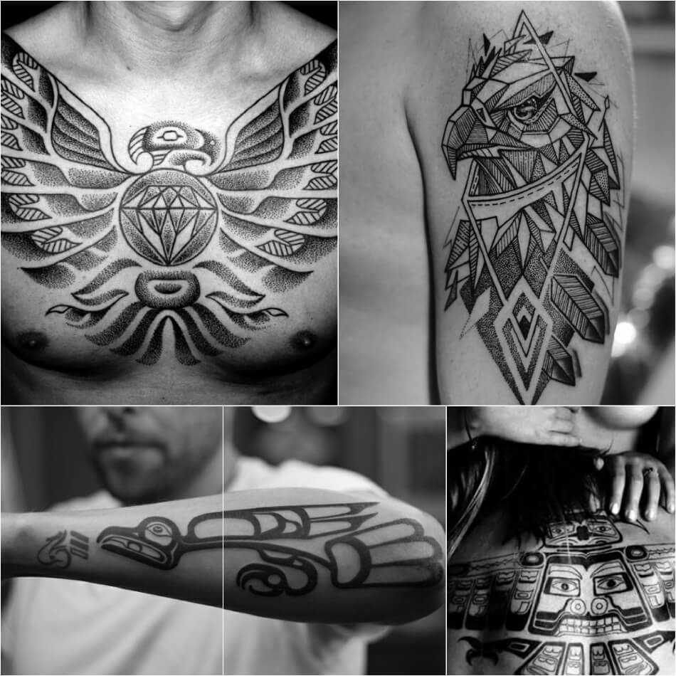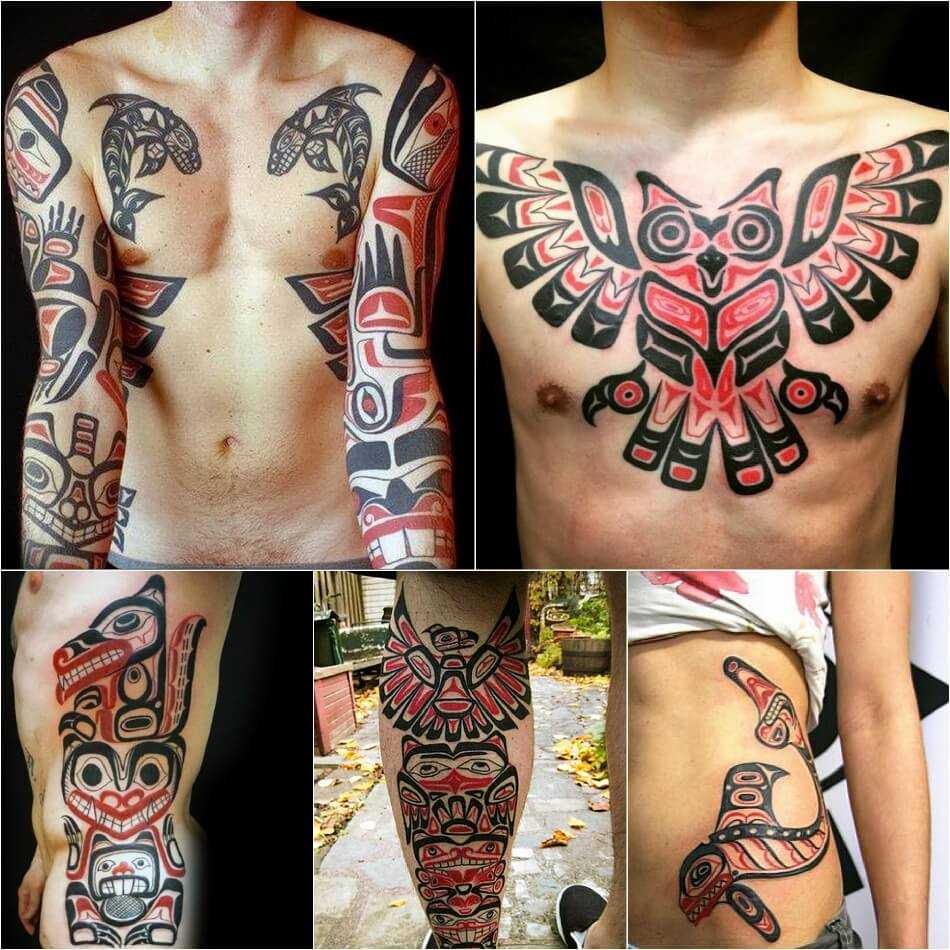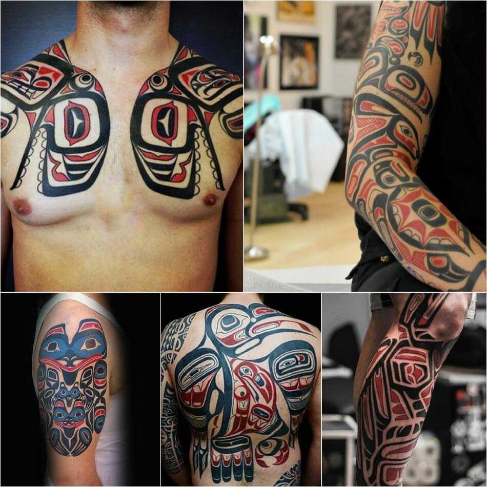 Символы индейского тату связывают с индейским народом Хайда. Этот вид татуировок отличается от других: