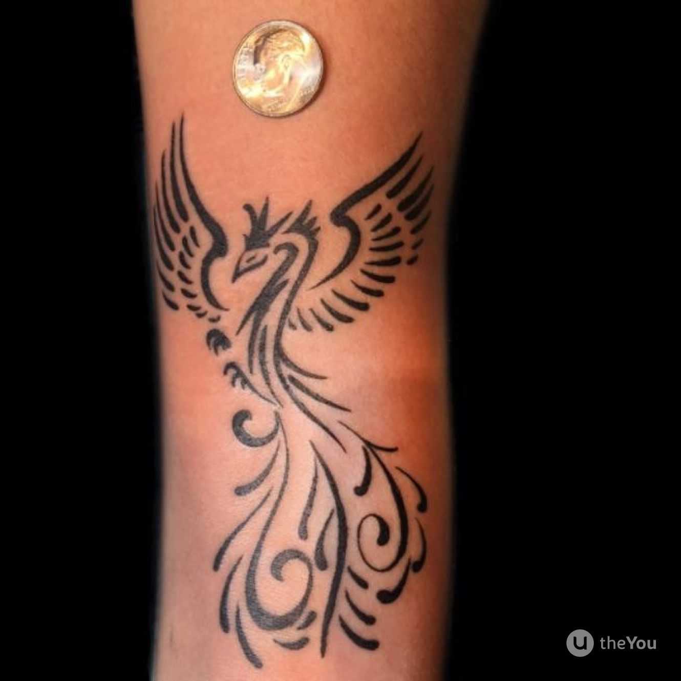 Из мистических персонажей популярна жар-птица, дракона обычно набивают парящим либо атакующим, но обязательно с распахнутыми крыльями. Кроме того, в мотивах тату изобилуют переплетения кругов и завитков, элементы флористики, миниатюры знаков зодиака.