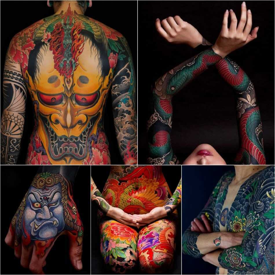 Японские тату и по сей день находятся на пике моды и отличаются яркостью и своим стилем. Нательные рисунки этой древней культуры выделяются особой яркостью. На них изображены иероглифы, мифологические животные, рыбы, самураи, гейши, а также целые сюжеты. Японские татуировки имеют свою классификацию: