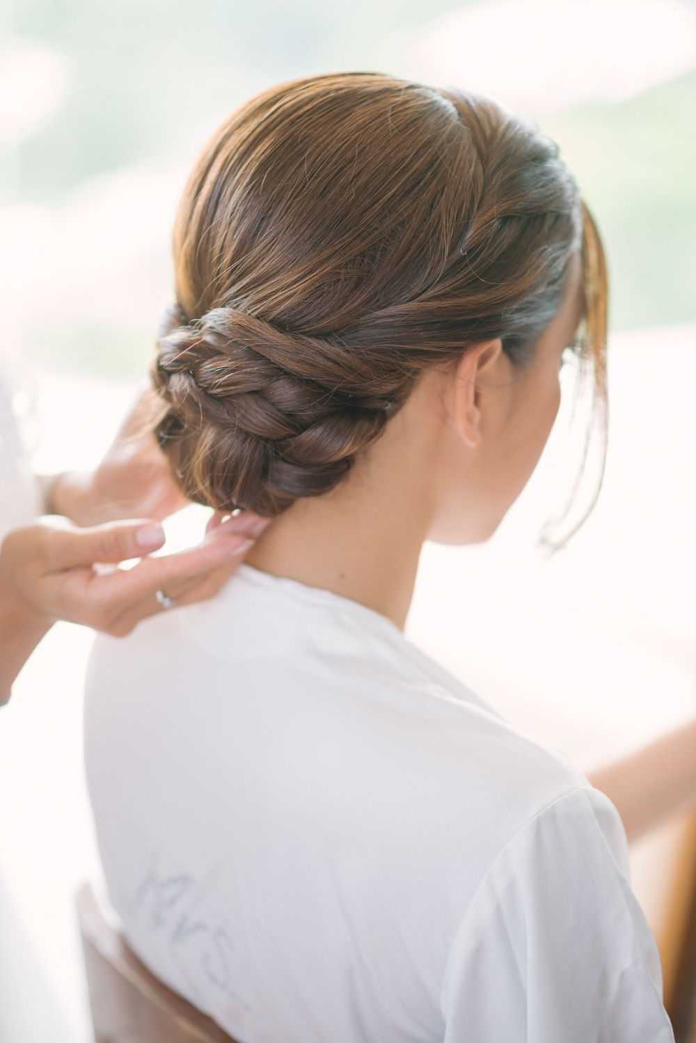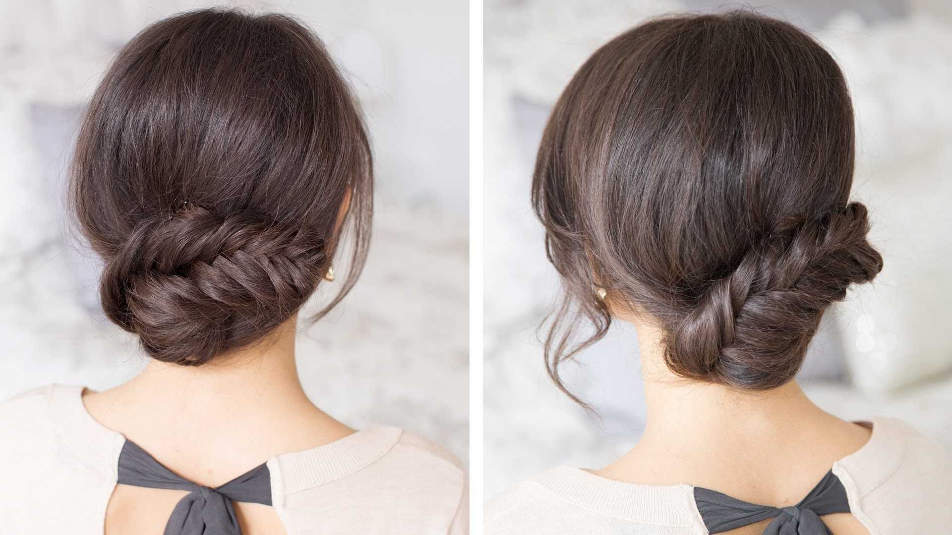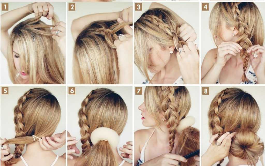 Данная вариация пучка интересна тем, что на задней части головы заплетена французская коса. Смотрится это необычно и элегантно. Выполнять эту прическу самостоятельно не так-то просто. Основная сложность заключается в том, что придется заплетать косу вслепую. Поэтому лучше потренироваться заранее, чтобы в назначенный день все прошло гладко. Для создания этого пучка нужно: