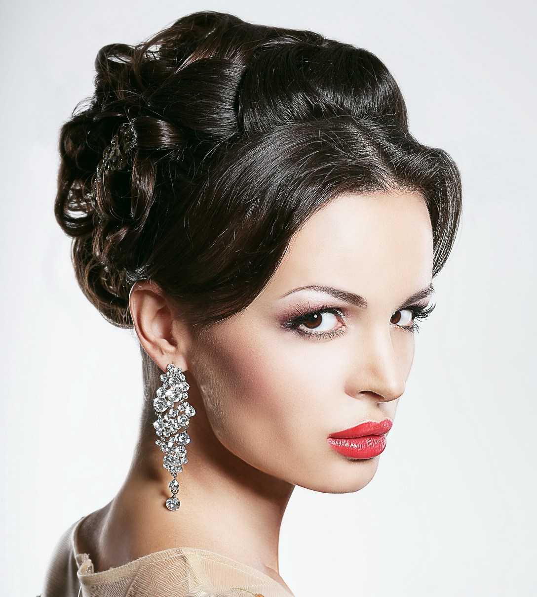 Вечерние прически с асимметричной челкой и укладкой на бок