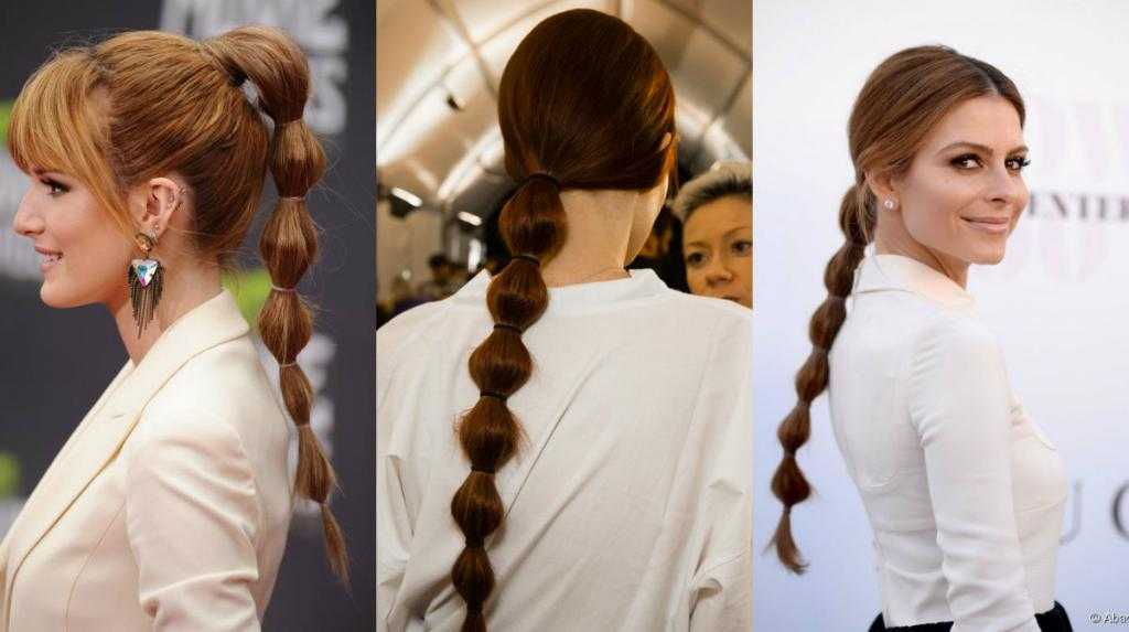 Идеальная прическа с хвостиком – вариант Пузыри. То есть вы завязываете обычный хвостик, затем берете тонкие резинки и одну за другой начинаете закреплять на волосах.