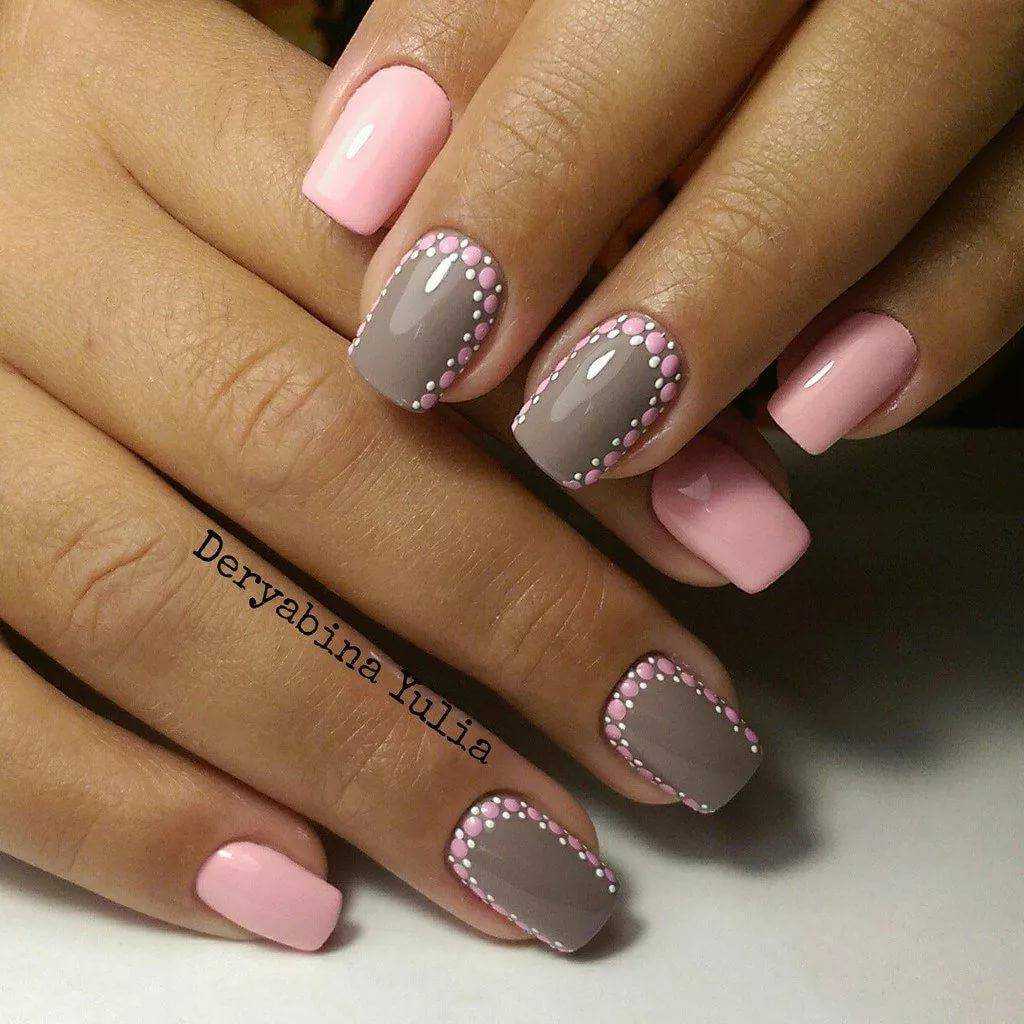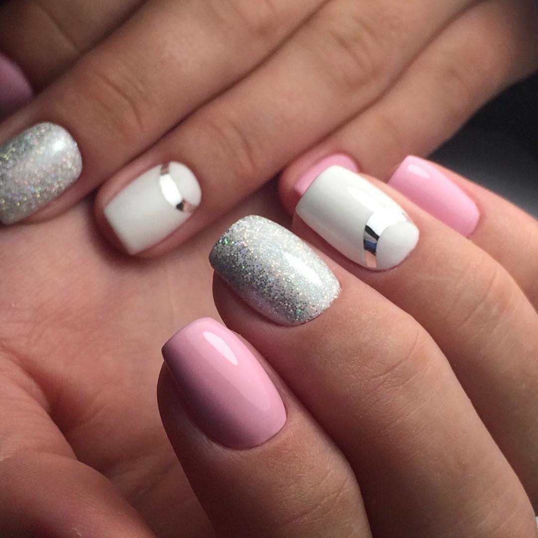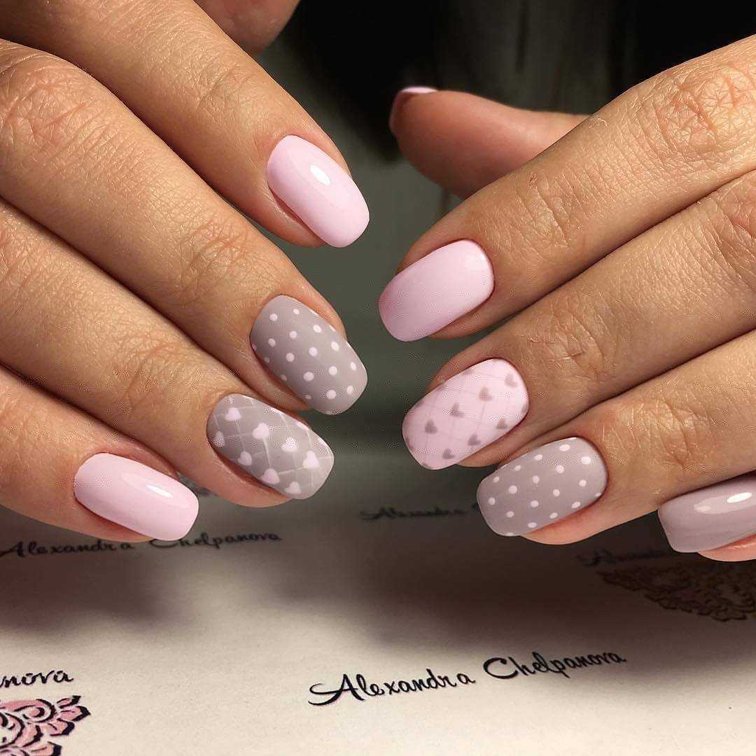 Розовый уместный в праздники и будни, вписывается в любимый имидж в одежде. Чёрный, белый и голубой тон создают красивый контраст. Серый оттенок приглушает розовый, делая ногти спокойными. Эффекты брызг, страз и мрамора выгодно подчеркнут образ.