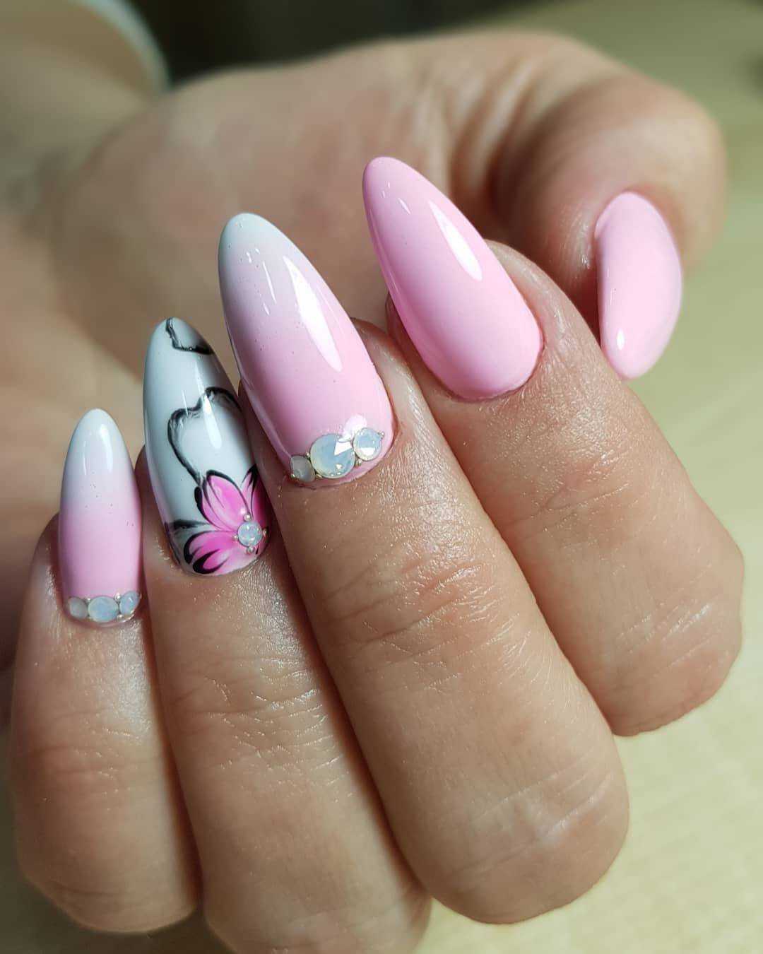 Все оттенки розового пользуются большой популярностью у романтичных девушек. Такой дизайн сочетается с любым нарядом. Используйте для создания светло-розового маникюра технику омбре, мраморный, лунный, французский, песочный дизайн, дополнив нейл-арт блестками, стразами или рисунками.
