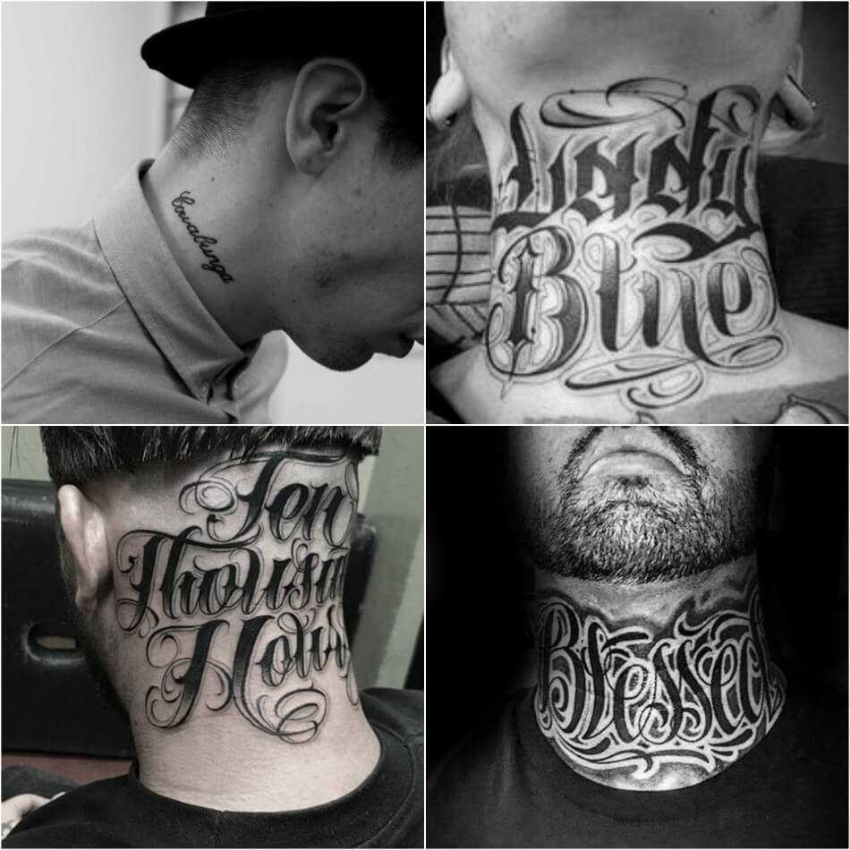 Шея является одним из самых универсальных вариантов размещения татуировки, несмотря на относительно меньшую поверхность по сравнению с грудью, спиной или ногами. Татуировки в этой области интересны в первую очередь тем, что практически всегда видна шея. Выбор этого конкретного места для татуировки многое говорит о человеке и его смелой личности, авантюрном духе и сильном характере.