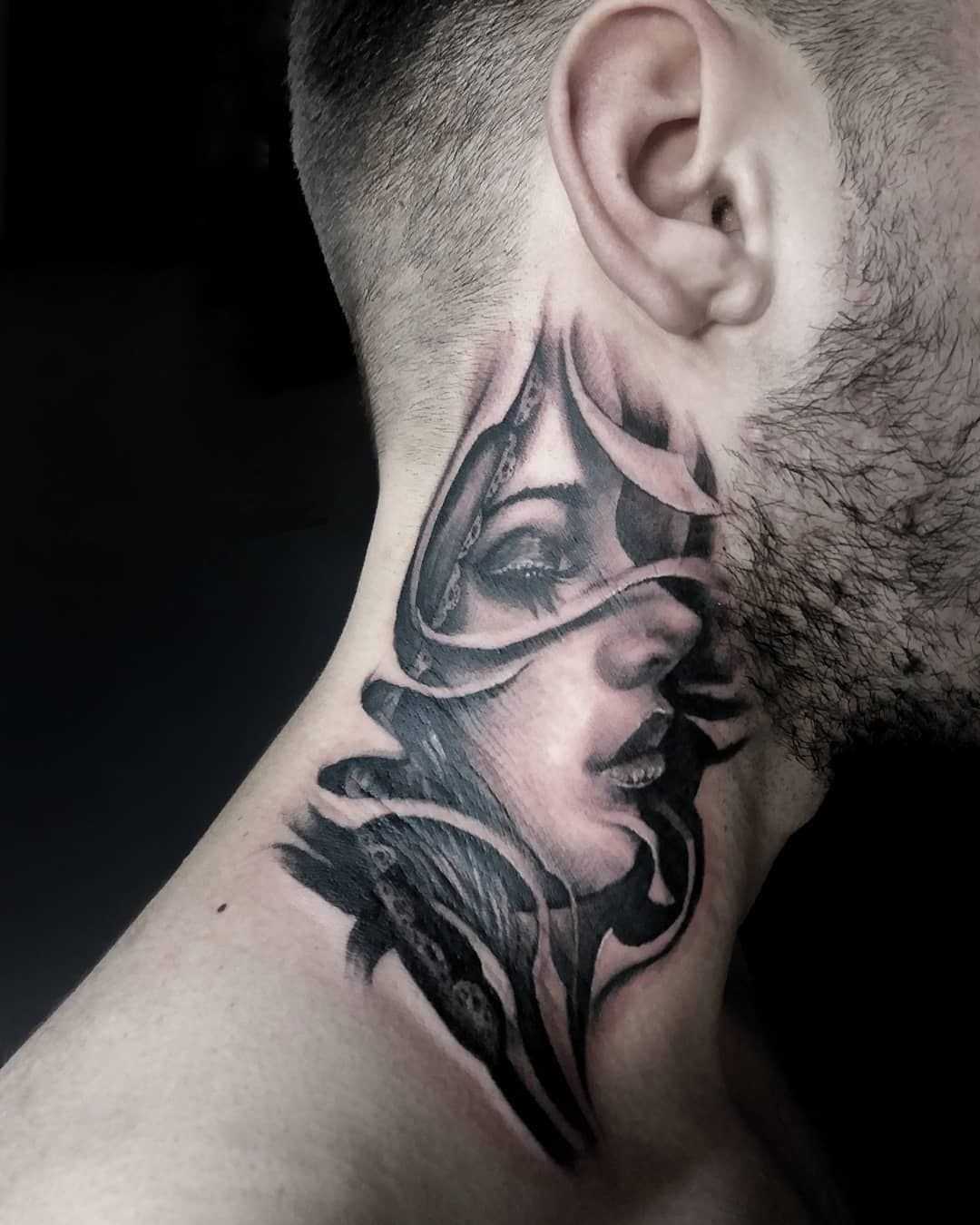 Неважно, что человек выходит одетым в несколько слоев одежды на улицу, шею всегда будут видеть. Нужно также помнить, что шея очень чувствительна, поэтому эта область может быть довольно болезненной для татуировок