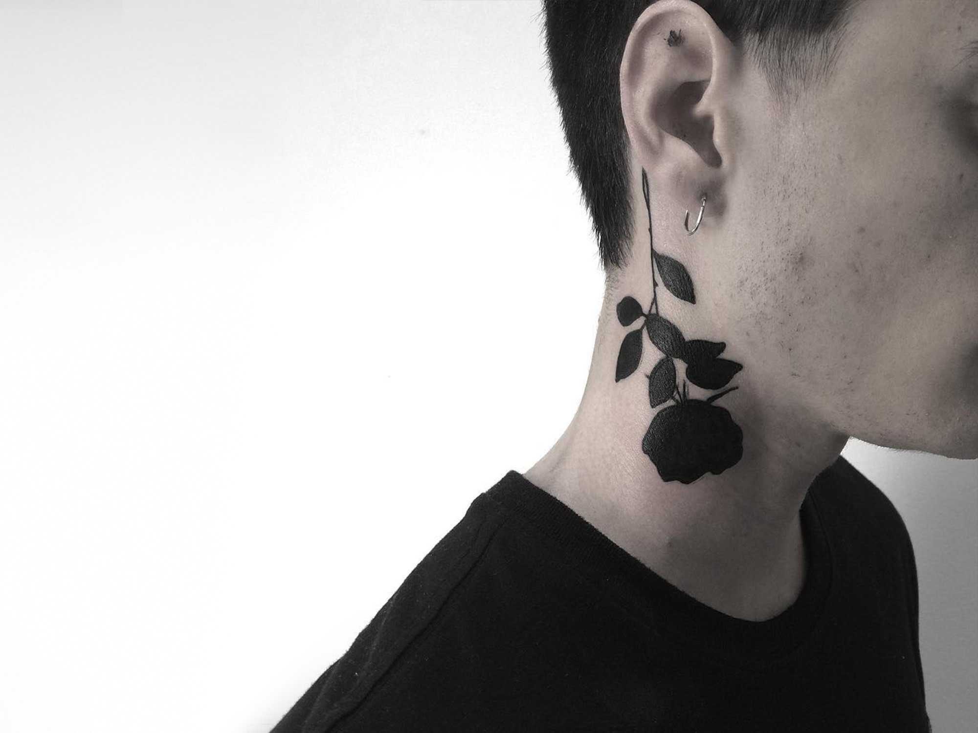 Интересный факт: В давние времена роза, которую выращивали на востоке, считалась мужским цветком. Изначально рисунок розы для тату использовали именно мужчины. Моряки, которые на долгий срок уходили в море делали татуировку с розой в знак тоски по любимым. В наши дни такое тату выбирает мужчина, который отдал свое сердце любимой женщине. Поэтому если вы видите рисунок розы на мужчине, особенно на таком заметном месте как шея, с большой вероятностью его сердце уже занято.