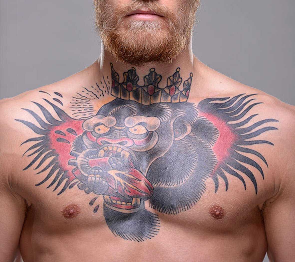 Татуировка гориллы на спине Макгрегора символизирует силу и мощь, а также представляет животное, которым он вдохновлялся в детстве.
