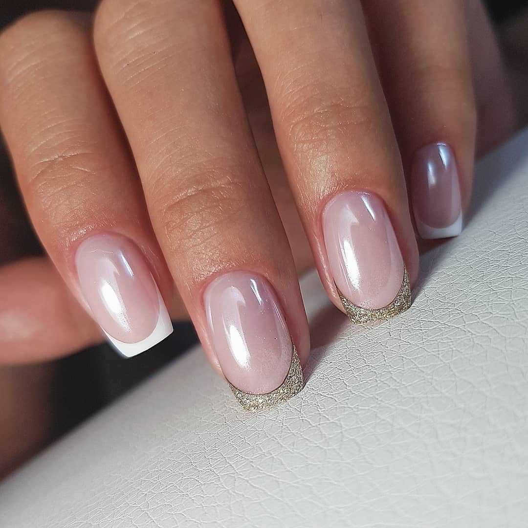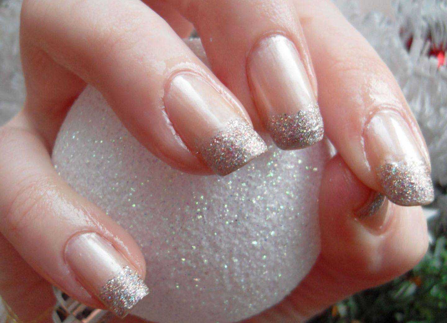 Французский маникюр с блестками на кончиках