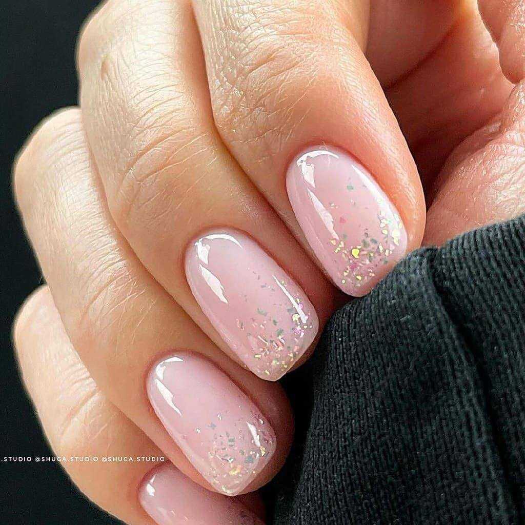 Прозрачный маникюр с блёстками на кончиках