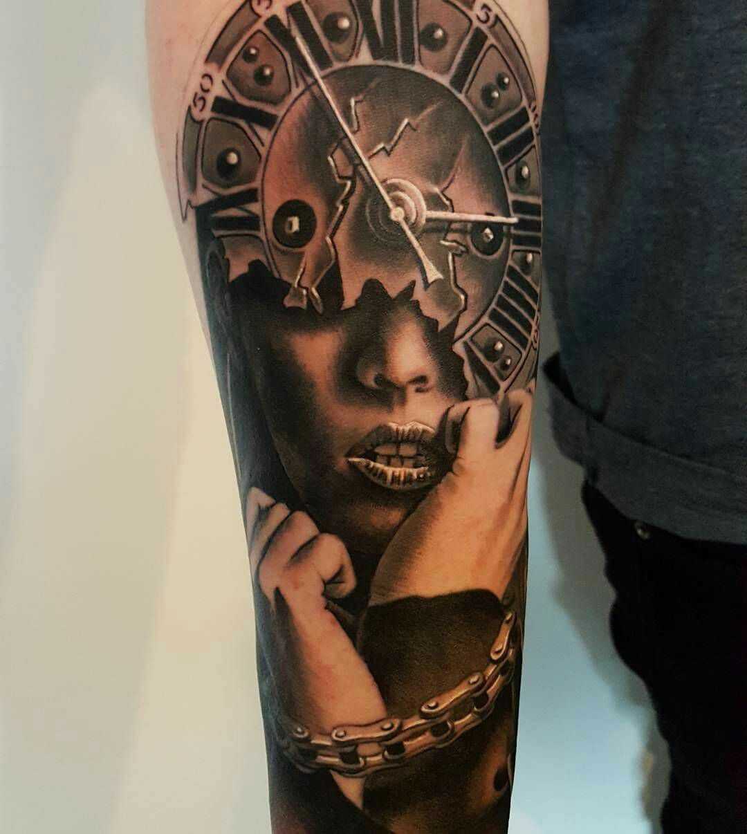 Яркие краски предпочитают дамы, но также далеко не всегда. Качественные тату с часами реалистичны, практически фото на теле. Популярна и абстракция, художественный вымысел. Причина конкретного выбора всегда индивидуальна, ведь такие изображения носят обычно интимный, личный характер. Люди управляют временем или наоборот – каждый решает сам, независимо от пола.