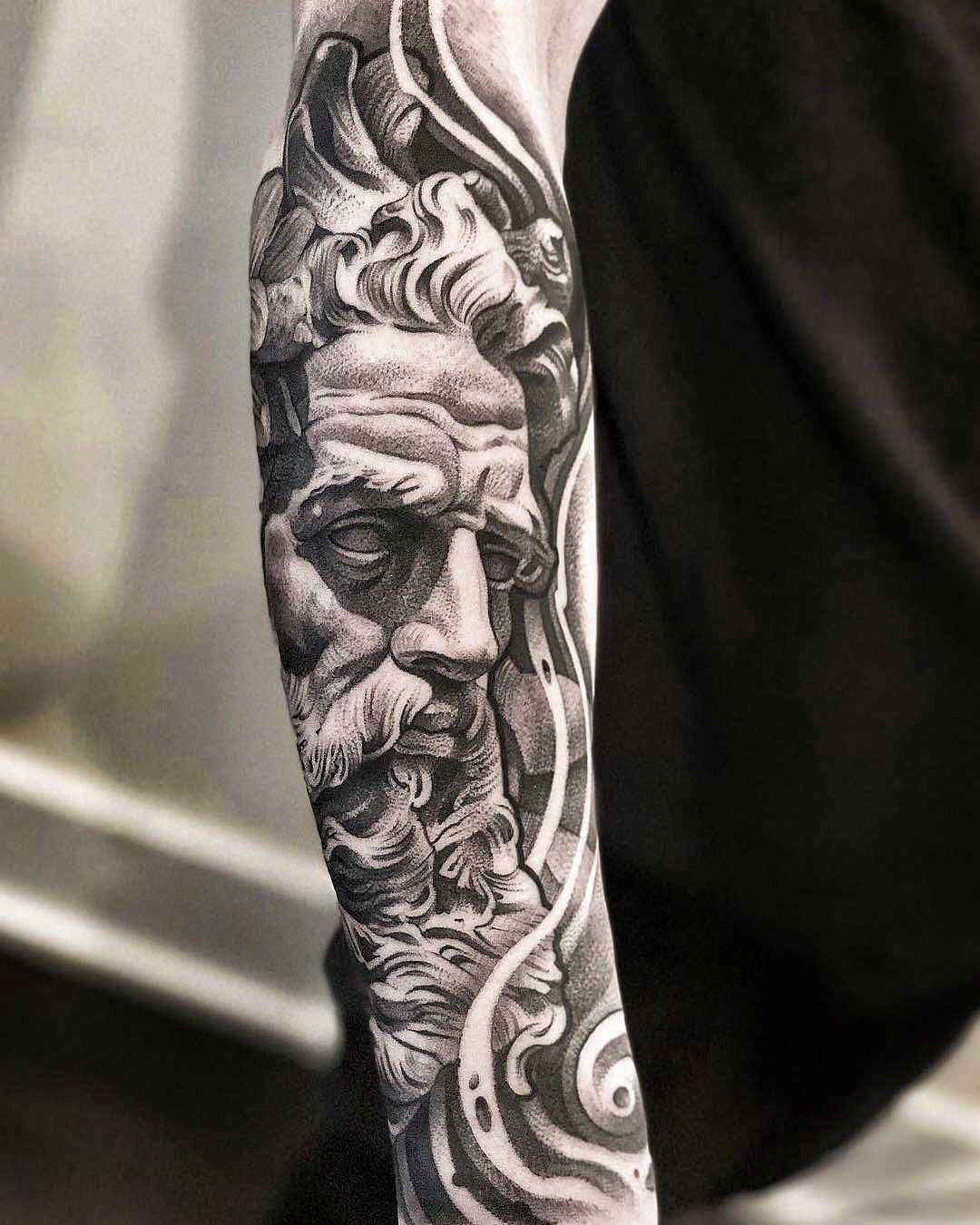 Гуляя по улице, мы часто встречаем людей с различными татуировками. Среди мужчин разных возрастов стала популярным тату бога Ареса. Воинская тематика на теле мужчины как нельзя лучше подчеркивает мужской характер, стойкость, самоотверженность, силу духа. Татуировку с изображением бога войны Ареса обычно набивают на руку, спину, а некоторые мужчины наносят такое изображение на грудь. Из мифологии нам известно, что бог войны Арес был сыном Зевса и Геры. Древнегреческий бог Арес был очень кровожадным и безрассудным, он любил жестокую войну, в которой проливалось много крови. Наличие такой татуировки на теле мужчины может означать, что человек очень импульсивный, эмоциональный, но несмотря на это отважный и благородный.