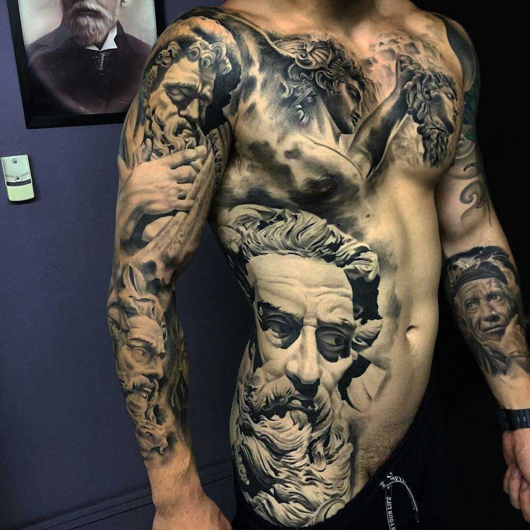 При создании татуировки следует также подумать о стиле, в котором будет изображен эскиз. Наиболее распространенный стиль изображения икон на теле — черно-белый, портретный.
