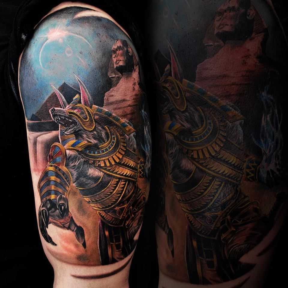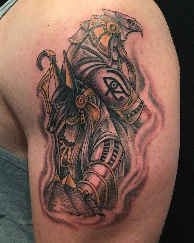Татуировки с изображением богов призваны оберегать владельца, это своеобразный талисман. Несмотря на большую популярность к таким татуировкам необходимо подходить со всей серьезностью и ответственностью. Люди, которые решили нанести на свое тело религиозную татуировку имеют свою позицию в обществе и хотят ее подчеркнуть. Кроме божеств Древнего Египта популярно набивать некоторые символы. При выборе картинки в тату-салоне вам предстоит выбрать стиль, который будет вам по душе. Вам могут предложить точное копирование древних изображений, а могут сделать изображение богов осовременив их через атрибуты нашего времени.