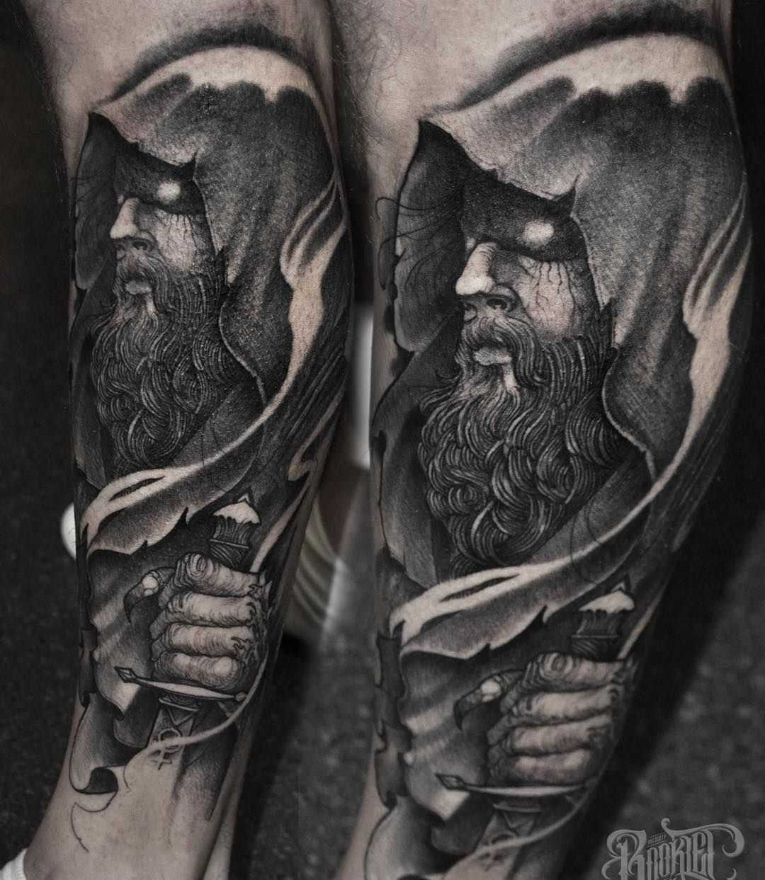 - Татуировки на голенях так же могут быть самыми разными. Однако это место пользуется чуть меньшим спросом среди желающих сделать тату. Почему? Дело в том, что в данном месте очень мало жира, а вот кость находится достаточно близко к поверхности. Все это дает весьма ощутимый болевой эффект, терпеть который под силу не каждой женщине.