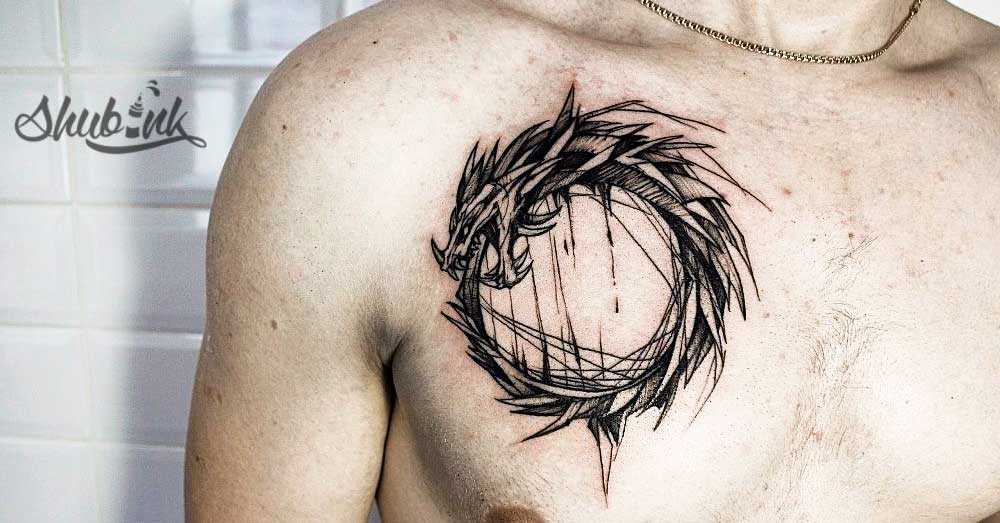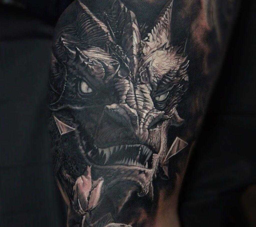 Конечно, не стоит забывать о том, что многое зависит и от цвета татуировки, так как яркие цвета могут придать татуировке более позитивное значение, даже если сам эскиз дракона немного устрашающий. И наоборот, более темные цвета и оттенки, придадут татуировке более зловещий вид, даже если сам эскиз тату не выглядит агрессивно.