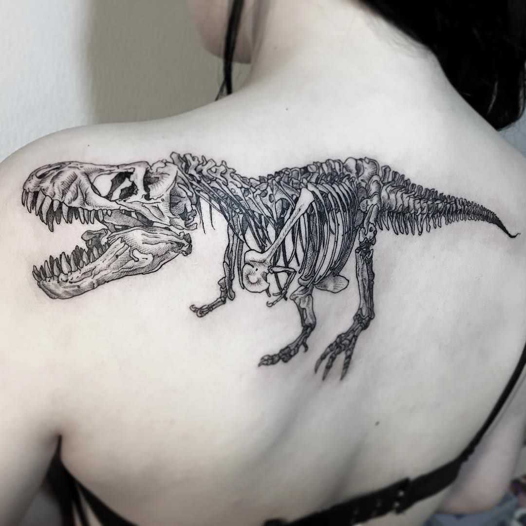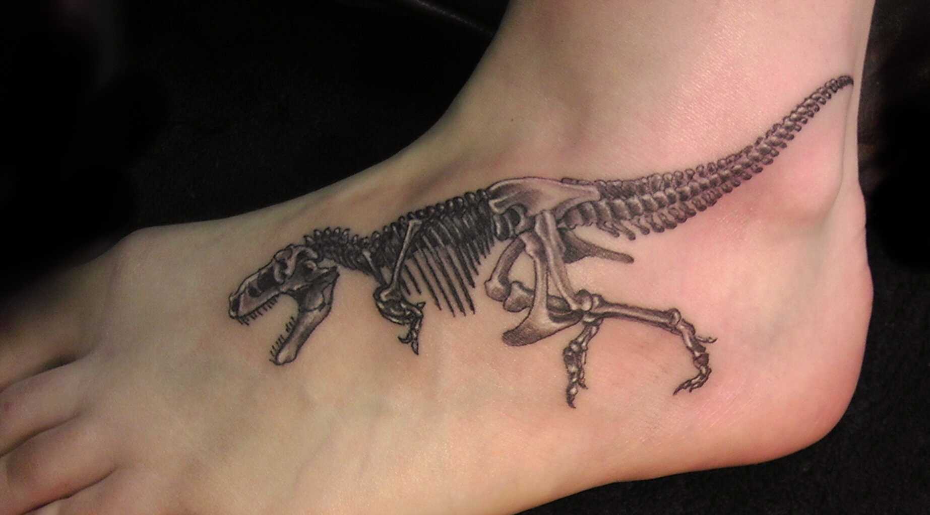Изображение скелета древнего ящера — это тату несёт определённую смысловую агрессию и напоминание о седом прошлом Земли.