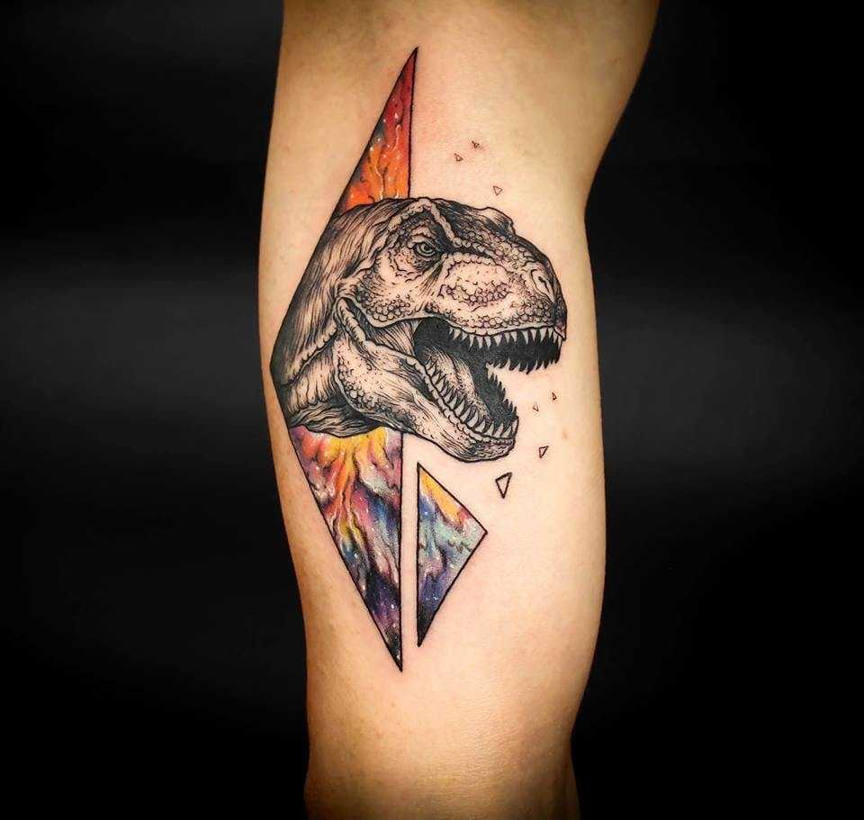 Это татуировка, которая обычно популярна среди молодых людей и тех, кто увлекается искусством. Если вы хотите связать динозавра с вашей страной, вы можете покрасить кожу в цвета вашего флага, но это займет несколько сеансов и, как правило, лучше для тех, кто может переносить больше боли.