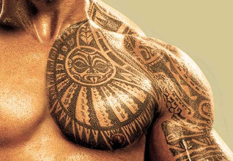 Сакральные нательные изображения — это графическое отображение судьбы и планов на будущее человека. Яркий тому пример — тату Дуэйна Джонсона. Эскиз разрабатывается обычно вместе с мастером во время неспешных бесед. Рассказывать о себе клиент продолжает и во время ритуала нанесения татуировки. Каждый символ, узор и даже самая маленькая черточка повествуют об определенном событии или мысли человека. У Дуэйна можно увидеть священные камни, дарующие обладателю уверенность в себе и укрепляющие чувство собственного достоинства. Рядом панцирь черепахи – как щит от злых духов. Имеются в этом сложном орнаменте и глаза предков, демонстрирующие привязанность к корням, и один большой глаз, позволяющий побеждать врагов. Джонсон Дуэйн тату выбрал в исторической полинезийской традиции. Изображена на нем и его семья, и времена жизни, а также всевозможные защитные символы и привлекающие удачу знаки.