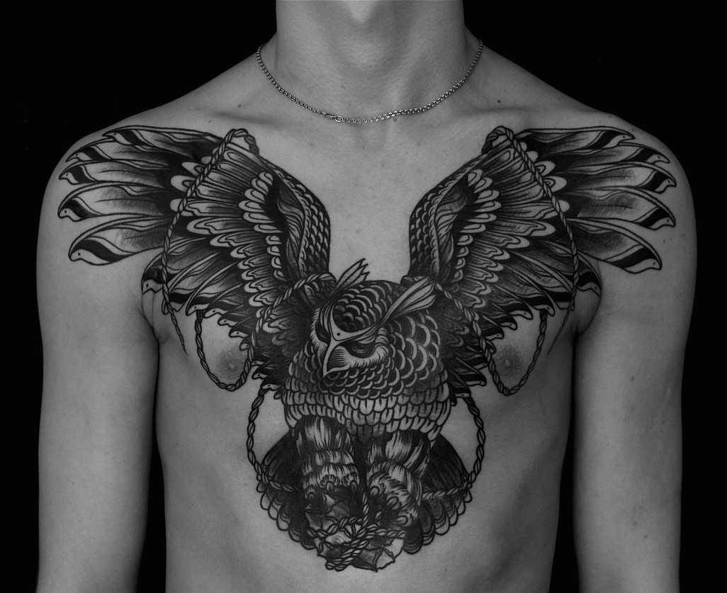 Тату филин – это благородный образ, который подходит в равной степени мужчинам и женщинам, однако у первых встречается чаще. Несмотря на неоднозначную символику в мировой культуре, изображение птицы пользуется спросом у поклонников нательной живописи. Что на самом деле означает нательный рисунок ночной птицы, что можно рассказать о его обладателе?