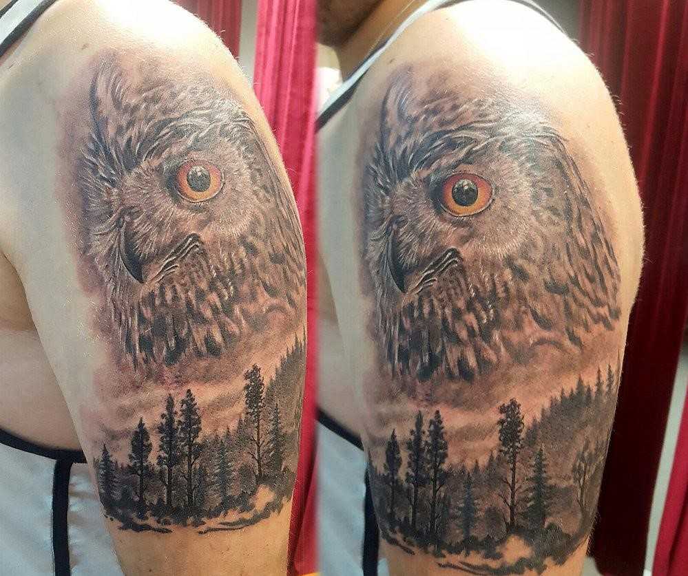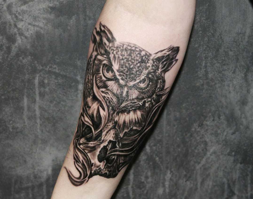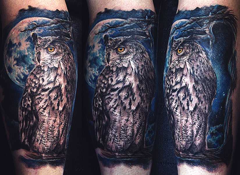 Это ночное животное совсем не так просто, как может показаться изначально. Хищное и опасное, оно стало одной из популярнейших птиц, какие только посещали человеческую кожу. Этот образ, хищный и мудрый одновременно, популяризирован многочисленными фильмами и книгами (вспомнить хотя бы повсеместное употребление этих животных в мире «Гарри Поттера»), да и просто иногда очень приятно проассоциировать себя с таким созданием, как сова. Потому многие хотят нанести тату с её изображением