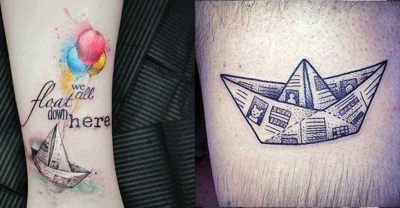 - Есть ли отдельное значение тату бумажный кораблик, сказать сложно. Часто такие эскизы используются в технике оригами, минимализме.