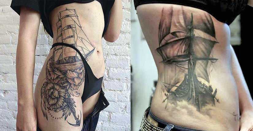 Всем известно, что моряков существует примета о том, что женщина на борту – это к беде. На самом деле она появилась не случайно, ведь жизнь на корабле в открытом море не так легка для представительниц прекрасного пола. Они не так выносливы, как мужчины, им проще заболеть морской болезнью. И тогда придется уделять им слишком много времени, Кроме этого, девушка на корабле будет привлекать к себе достаточно большое количество мужского внимания и отвлекать членов команды от важных и срочных дел. Может быть именно поэтому девушками так же полюбились татуировки с изображением кораблей и фрегатов