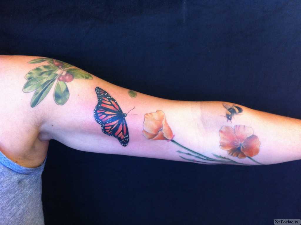 Эта часть тела менее заметная, чем запястье, но летом такое тату будет выглядеть эффектно и оригинально. Зачастую мастера рекомендуют набивать рисунок в 3D-варианте, чтобы достичь идеального впечатления движущейся бабочки. Якобы она сейчас порхнет своими крыльями и улетит. Само исполнение бабочки на теле придает такую же нежность и легкость, как у насекомого.