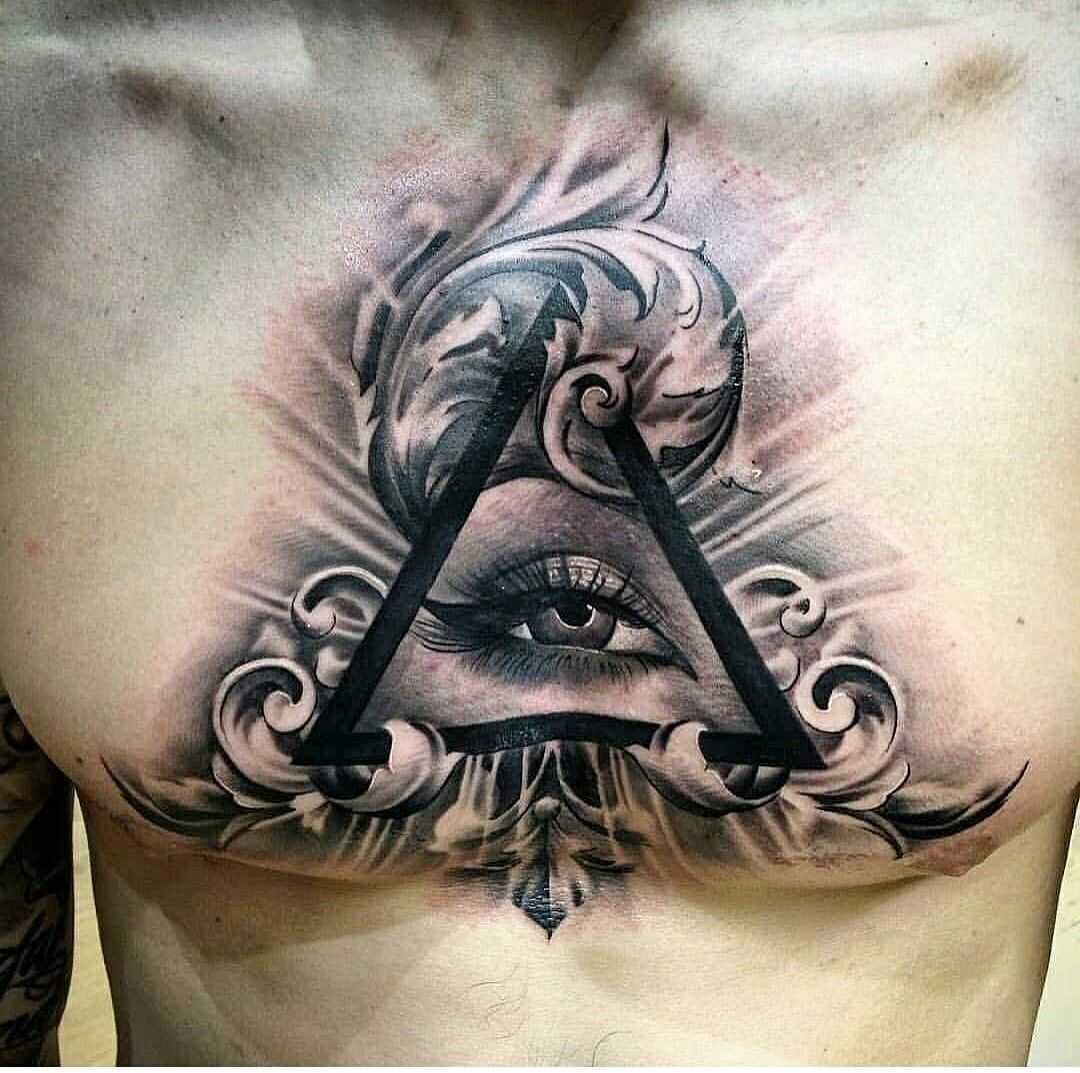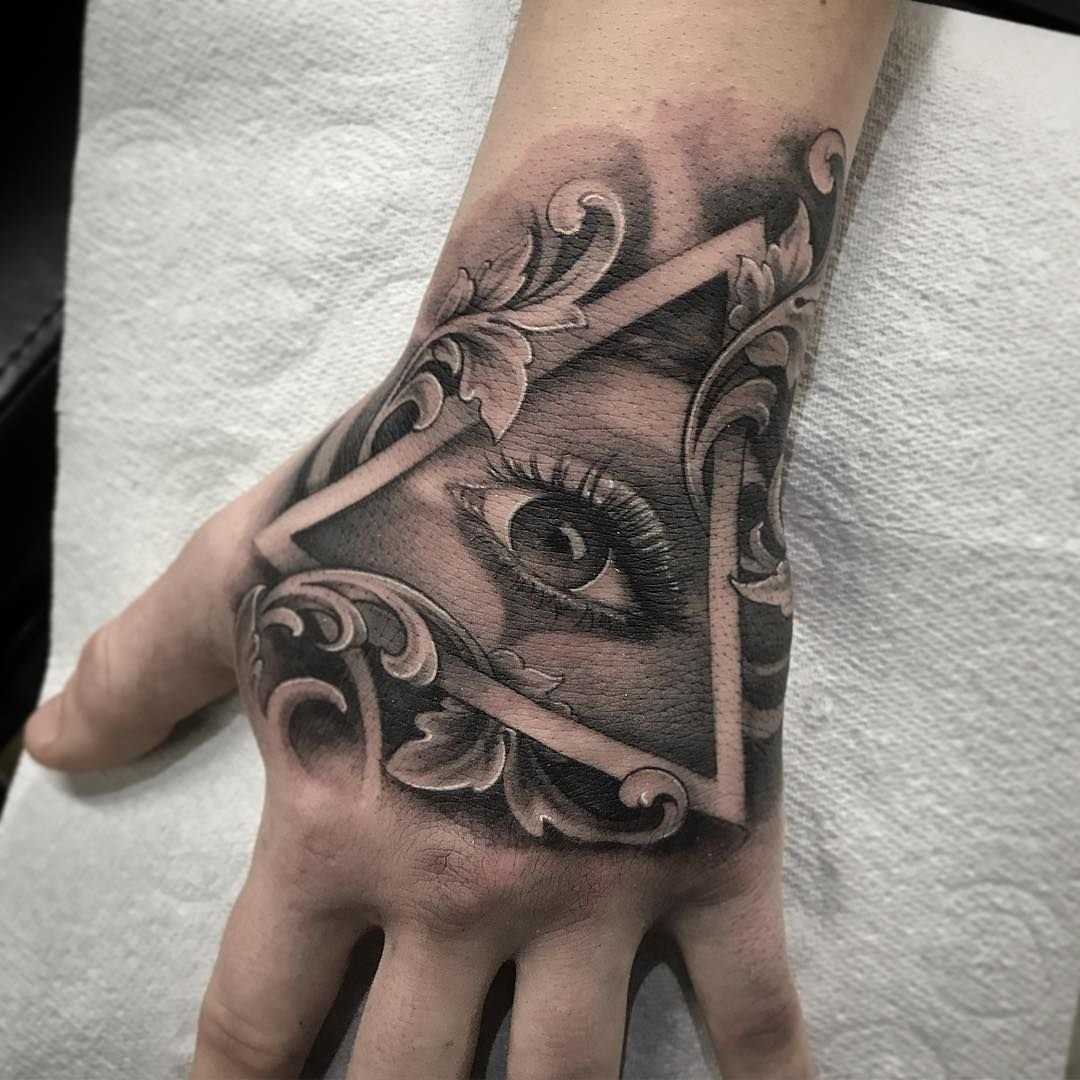 Татуировка глаза в треугольнике имеет множество интерпретаций, но ее основным значением является символ внутреннего видения и проницательности.