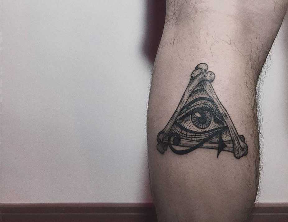 Глаз, изображенный в треугольнике, или, если правильно его называть – Всевидящее око – это татуировка, которая обладает, наверное, наиболее мистическим и символическим значением в наше время. Значение данной татуировки имеет несколько толкований. К примеру, Платон дал название Всевидящему оку – “солнечный инструмент”. Отсюда следует, что одно из значений этого символа – это ум, бдительность и озарение. Также, его можно растолковать, как ограниченность видимого.