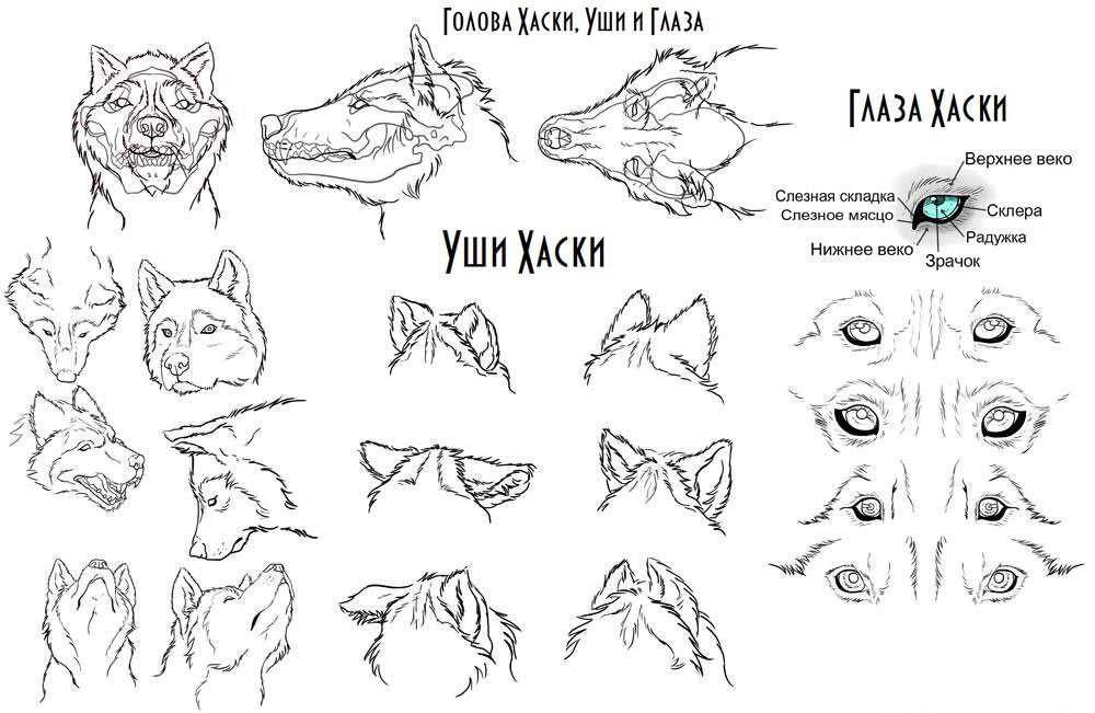 На втором шаге ознакомимся со строением головы, ушей и глаз Хаски.