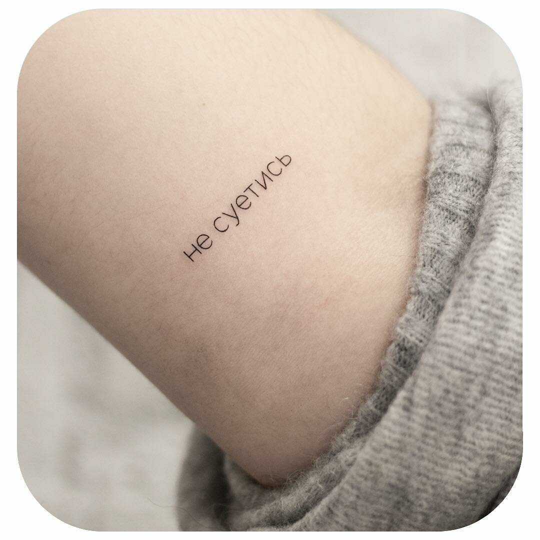 Крылатые выражения, философские изречения, мотивирующие фразы — маленькие мужские тату в виде надписей со смыслом не менее распространены, чем женские. Разве что посыл у них более прямолинейный и брутальный.