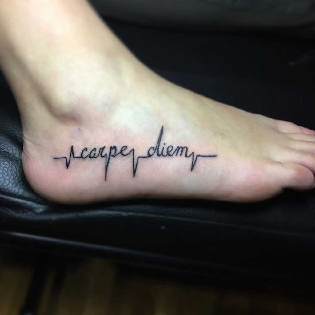 Самый часто выбираемый язык для надписей у девушек. Обычно это цитаты, которые служат напоминанием о памятном моменте или являются отражением жизненной позиции.