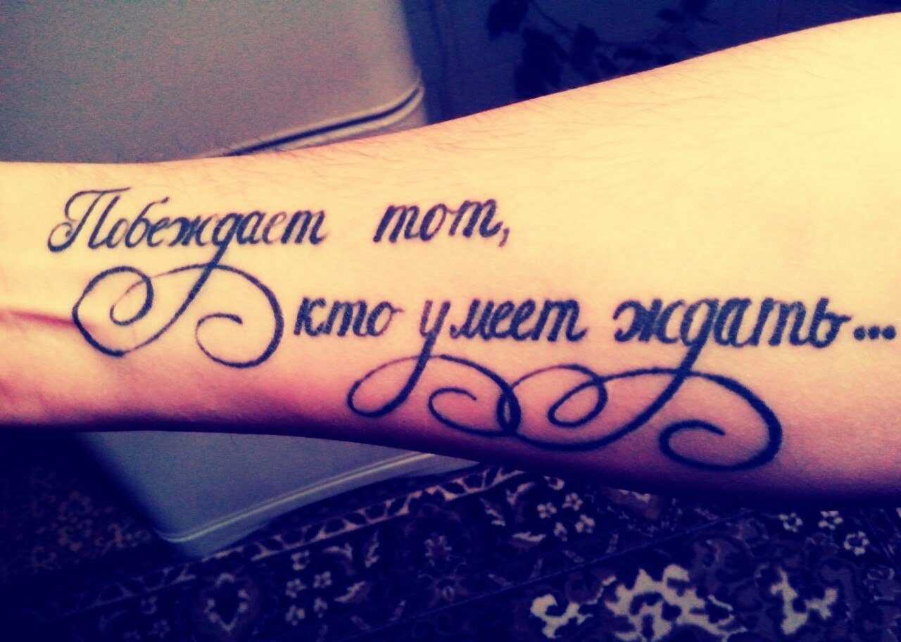 Тату на русском языке делают редко. Большинству кажется, что более эстетично смотрятся надписи на латыни, японском или английском языке. В них есть какая-то загадка.