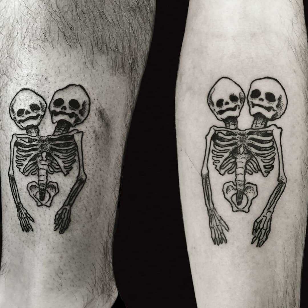 На руках есть пара татуировок со скелетами. Здесь оба скелета целуют друг друга и изливают друг на друга любовь. Это изображение скелета пары завоевывает известность и популярность среди людей.