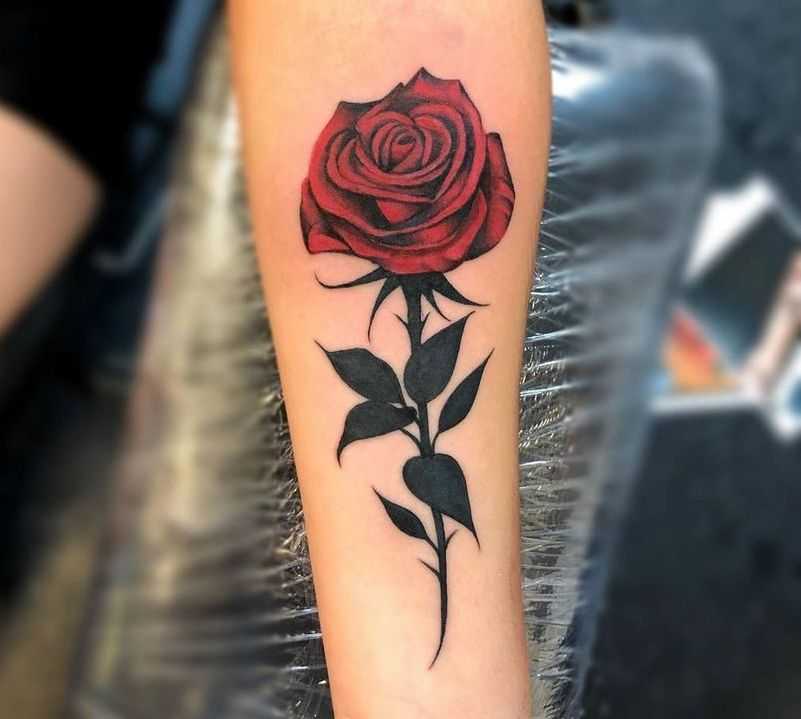 Красная роза — символ любви и страсти. Часто наколка роза на руке красного цвета выбирается в качестве символа любви к своему партнеру. Также красная роза может означать сильные эмоции, например, переживания в период развода или разрыва отношений.