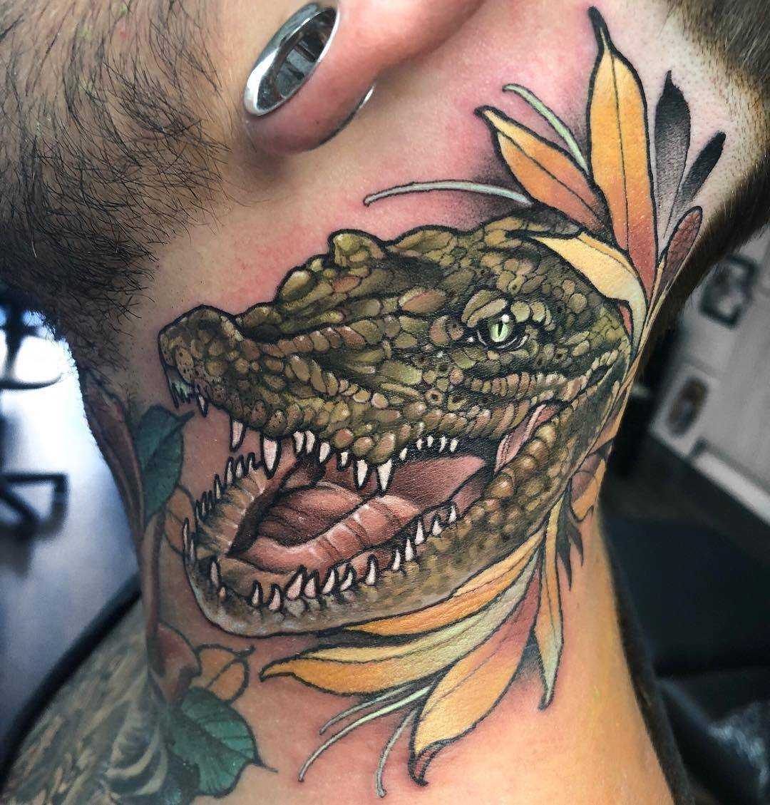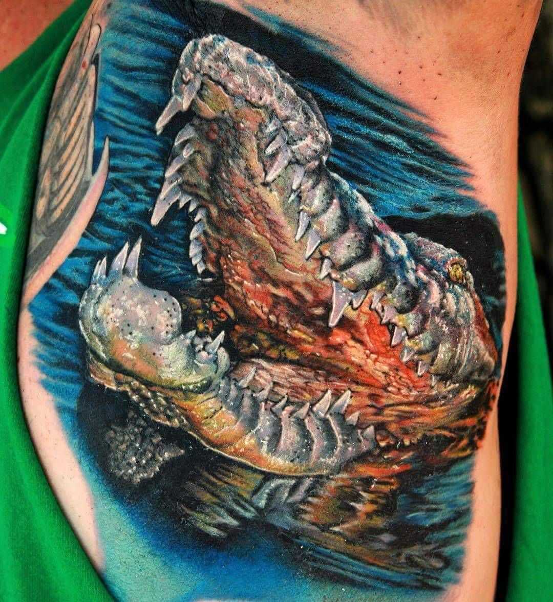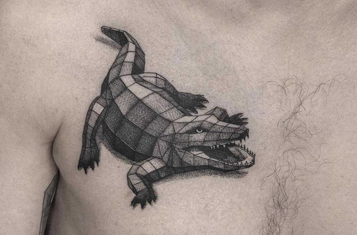 Татуировка с изображением крокодила может указывать на важность быть бдительным и внимательным к окружающему миру