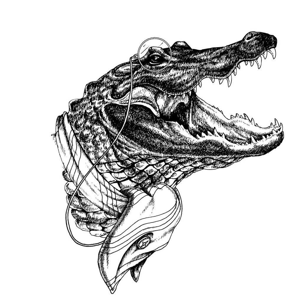 В данном случае крокодил выглядит крайне реалистично, прорисованы все мельчайшие детали. Так и кажется, что он оживет и набросится на свою добычу. Тем более что пасть у него открыта. Черно-белый вариант делает данное изображение очень сдержанным, но при этом оно не теряет своей красоты. Видно, что над таким произведением поработал мастер.