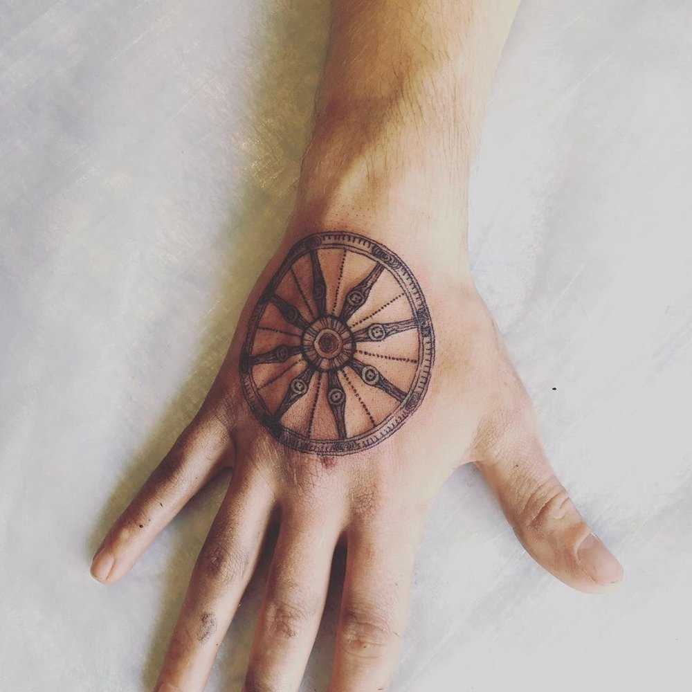 Сегодня предлагаем разобраться в значении тату в виде круга. Эта фигура является одной из самых распространенных геометрических фигур. По мнения различных школ, круг – одна из самых совершенных форм. Описания даже мифический храм Аполлона имеет форму круга. Те же мифические представления рассказывают про то, что даже Бог является кругом с вездесущим центром. У этой фигуры нет ни начала, ни конца, ни какого-либо направления, ни даже ориентации. Небосвод в следствии круговых траекторий движения звезд вокруг небесного полюса является круглым куполом. В том случае, если на него нанести спицы, то он и вовсе может стать символом колеса, которое способно демонстрировать динамику. Многие подобное изображение толкуют как упрощенную картинку колеса от цыганской повозки. А другие и вовсе в этом знаки видят символ вечного движения, постоянных перемещений кочевников.