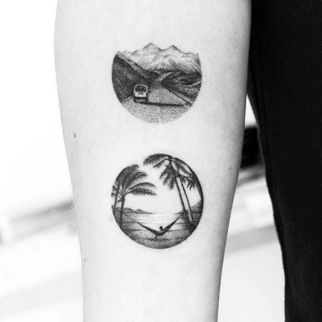 Нередко в качестве тату с кругом представители сильного пола делают нательный рисунок с изображением солнца. Женщины чаще предпочитают татуировку в виде луны. Эти две татуировки могут олицетворять единство и прочный союз. Кроме того, в качестве обязательного элемента круг входит в изображение мандалы. Почитатели буддизма понимают глубину символизма изображения.