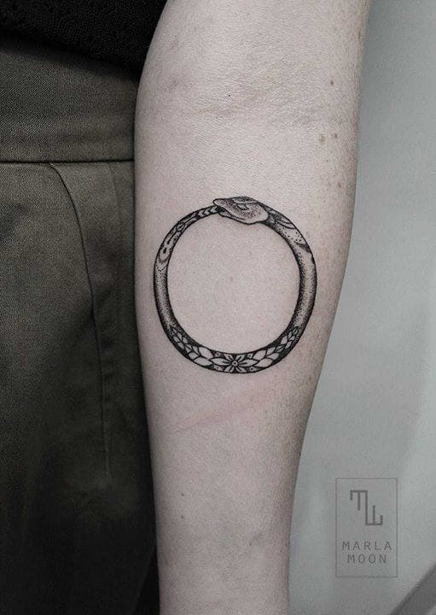Кроме того, обладательница такой татуировки понимает непрерывность бытия. Однако иногда девушки и женщины старшего возраста делают эффектные тату в виде круга по причине оригинальности рисунка, а не из-за особого символического значения.