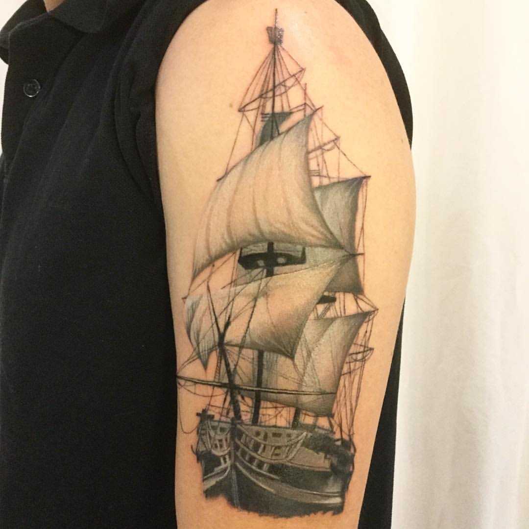 Наиболее эффектно корабль смотрится на верхней части руки, так как в этой области можно нарисовать крупный эскиз. Вообще, изображение будет уместно на любой части тела как в крупном масштабе, так и в миниатюре. Единственные условия для успешного результата – профессионализм татуировщика и уверенность клиента в выбранном изображении.