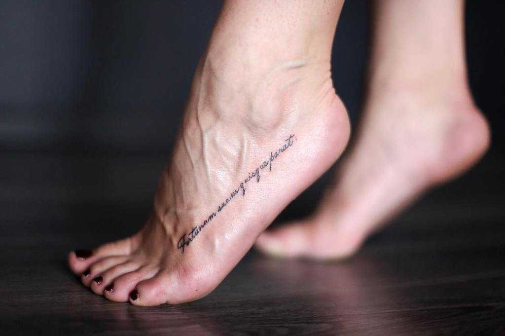 Такая татуировка привлекательно смотрится вместе с открытой обувью или моделях на шпильке. К достоинствам такого тату относят то, что оно будет привлекательно выглядеть в любом возрасте, так как именно эта часть ноги меньше всего подвержена возрастным изменениям.