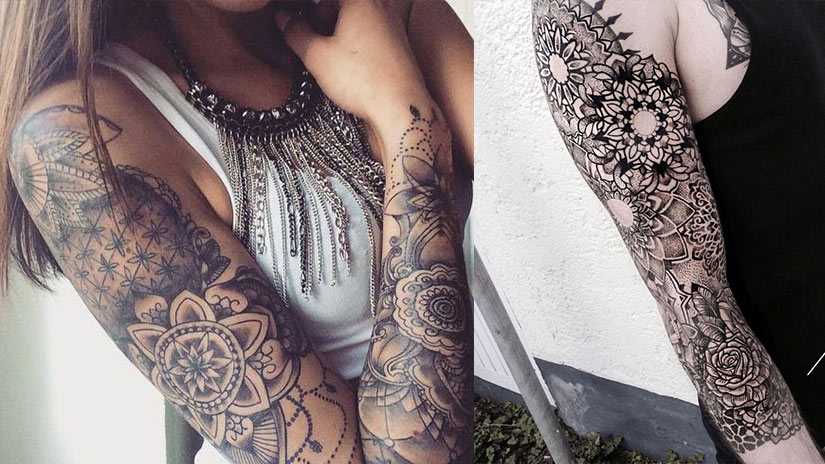 Из мандал и дополнительных деталей можно набить тату-рукав. Он будет выглядеть эффектно и красиво, при этом неся особый сакральный смысл для каждого человека. Можете использовать разные по значению узоры. Одни будут вас гармонизировать, другие защищать от различных негативных внешних воздействий, третьи – привлекать удачу.
