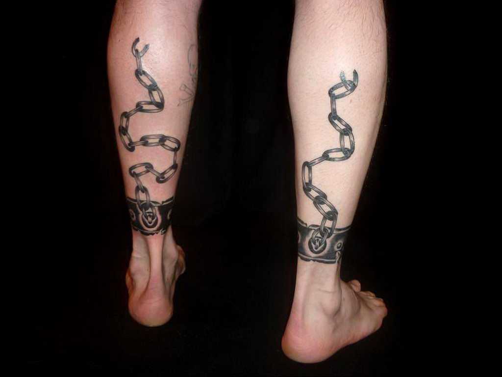 На голенях, икрах и бедрах женщины отдают предпочтение кружевам, цветочным рисункам или животным. Противоположный пол выбирает для наколки на этом участке ноги биомеханику, геометрию или японские тату.